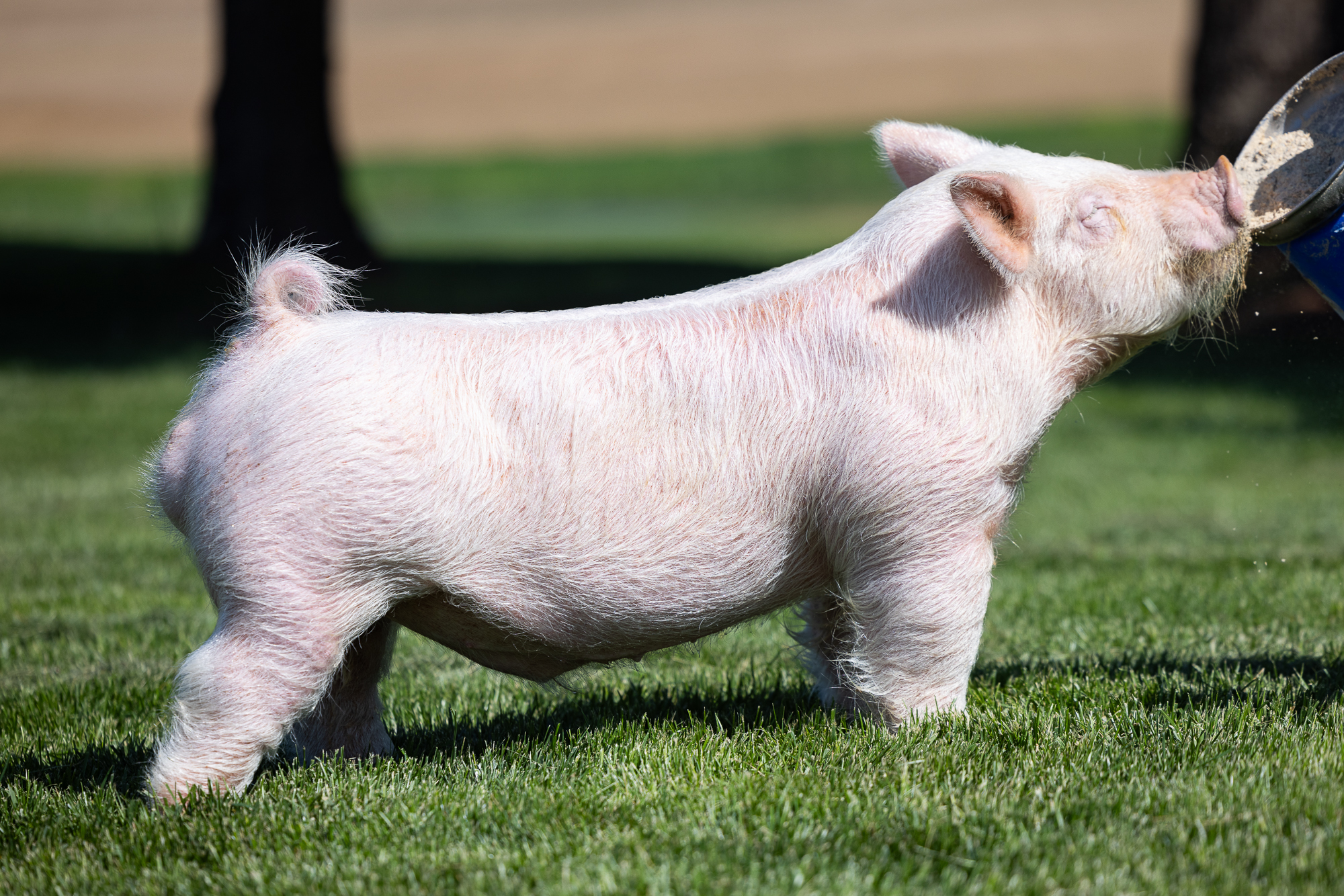 His ‘clone-mate’ was purchased in the ’25 Exchange by Final Drive Genetics and affectionally named “Moose.” We elected to leave the name Mighty Whitey alone for the clone that stayed here. We didn’t give him a bunch of chances the first time around, but he certainly grabbed more than his share of the attention around here. As the sire of the 152’s, he’s responsible for the $24,500 blue gilt, $13,000 belted sister and $2,500 brother. Needless to say, we’ve found a few more spots for him of late and certainly believe he has a place in the modern era of show pigs! *Note, he’ll sire white, blue, calico and belts – depending on the genetic makeup of your female